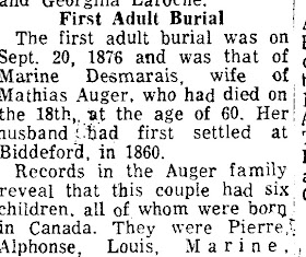 Anyhow, as I was searching for information I reached out to the Maine Franco-American Genealogical Society who informed me that they checked the database for St Peter's and Louis was indeed buried in St. Peter's and had him listed in the same family plot that everyone else is buried in. I was thrilled, however, soon after I reached back out to my source to get a printout of the evidence he had provided me, and he told me he had erred and could not confirm he was buried there. He said there are two "Louis Auger’s” in St. Peter's but can neither deny or confirm if either one is him. Back to square one...